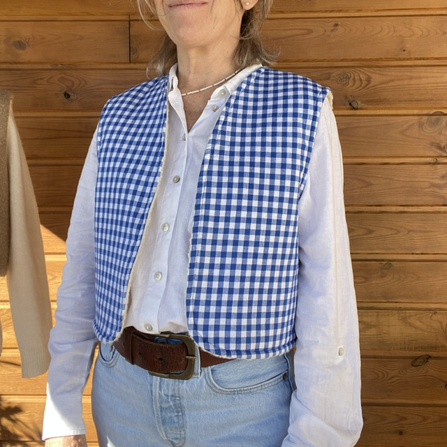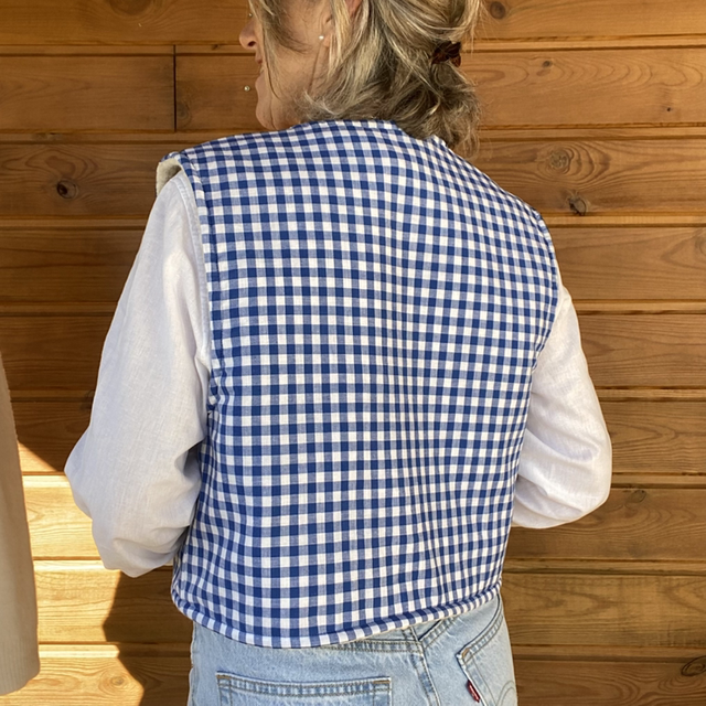 Oyat - Gilet femme réversible vichy bleu T.38