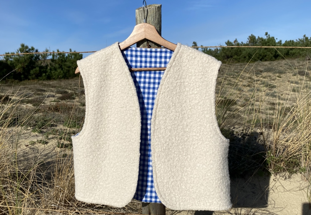 Oyat 🌾 - Confectionné à la main dans les Landes, ce gilet réversible sans manche allie confort, élégance et éthique.